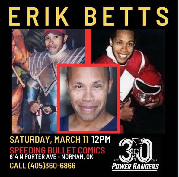 Speeding Bullet is excited to announce a signing appearance by actor, stuntman and martial artist Erik Betts of “Mighty Morphin Power Rangers” and “Buffy the Vampire Slayer” at noon Saturday, March 11!