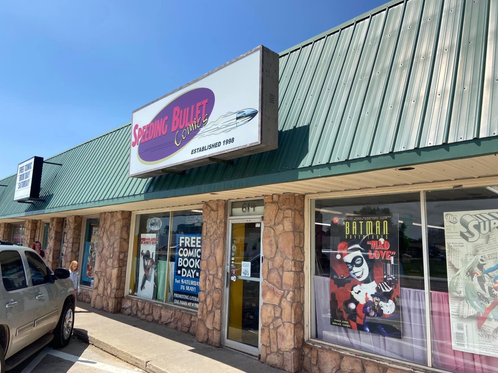 Speeding Bullet Comics celebrates 25 years in 2023 — Annette and I took over the shop on June 8, 1998. The retail comics shop continues to serve Norman, Oklahoma at 614 N. Porter Ave.